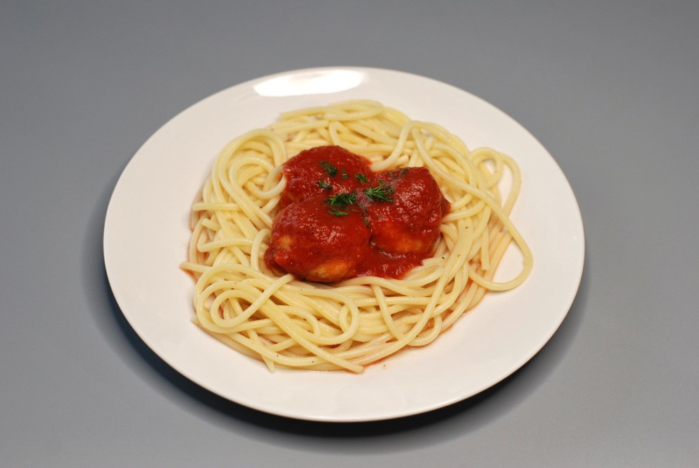 Паста з томатами і мітболами